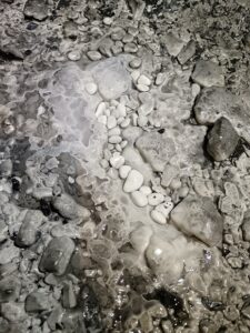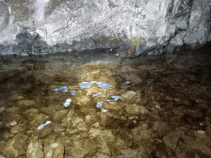 Nous visitons les galeries 2 et 3 dans leur totalité. Pour la galerie 1, seule Anne affrontera l’eau froide qui n’est vraiment pas loin de rentrer dans les bottes.